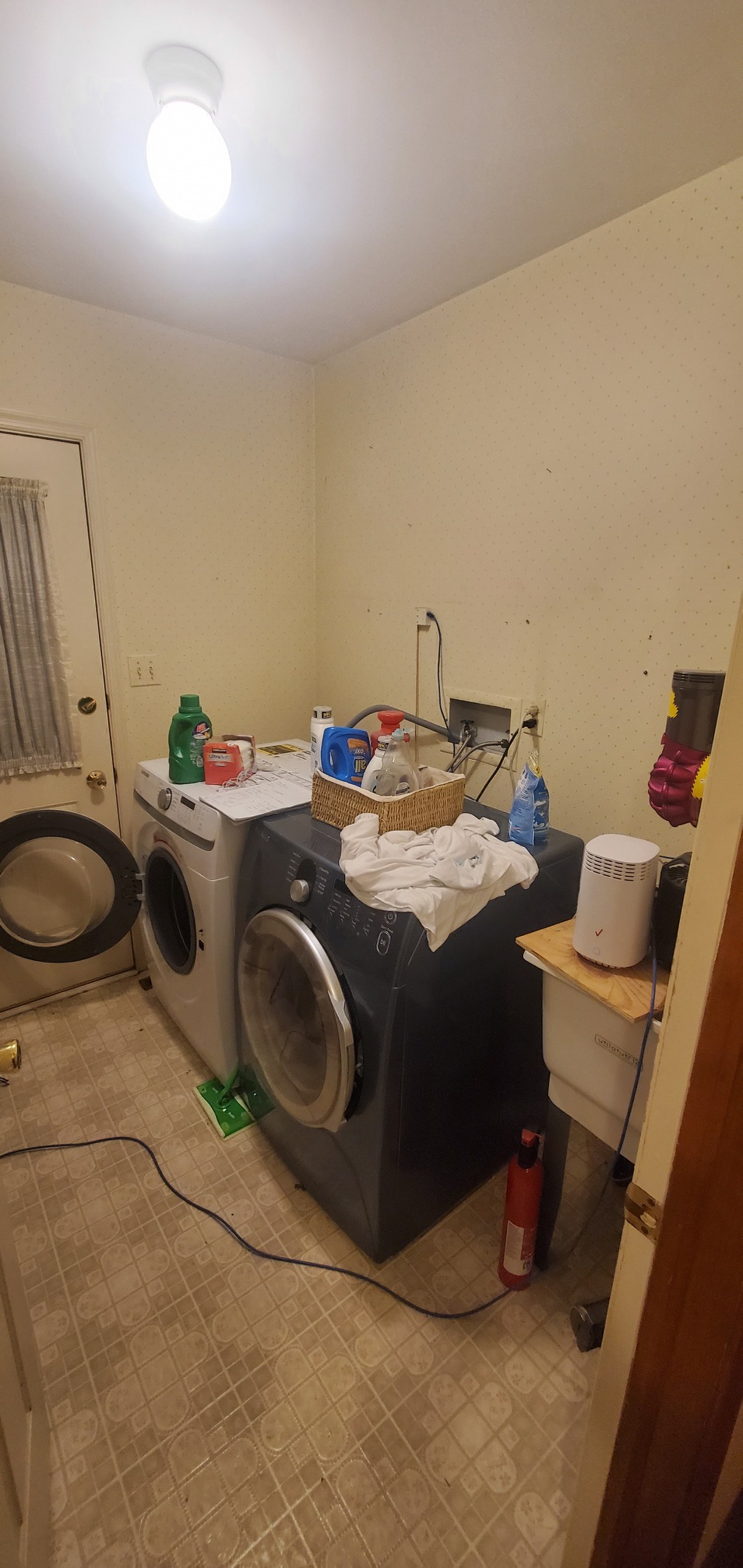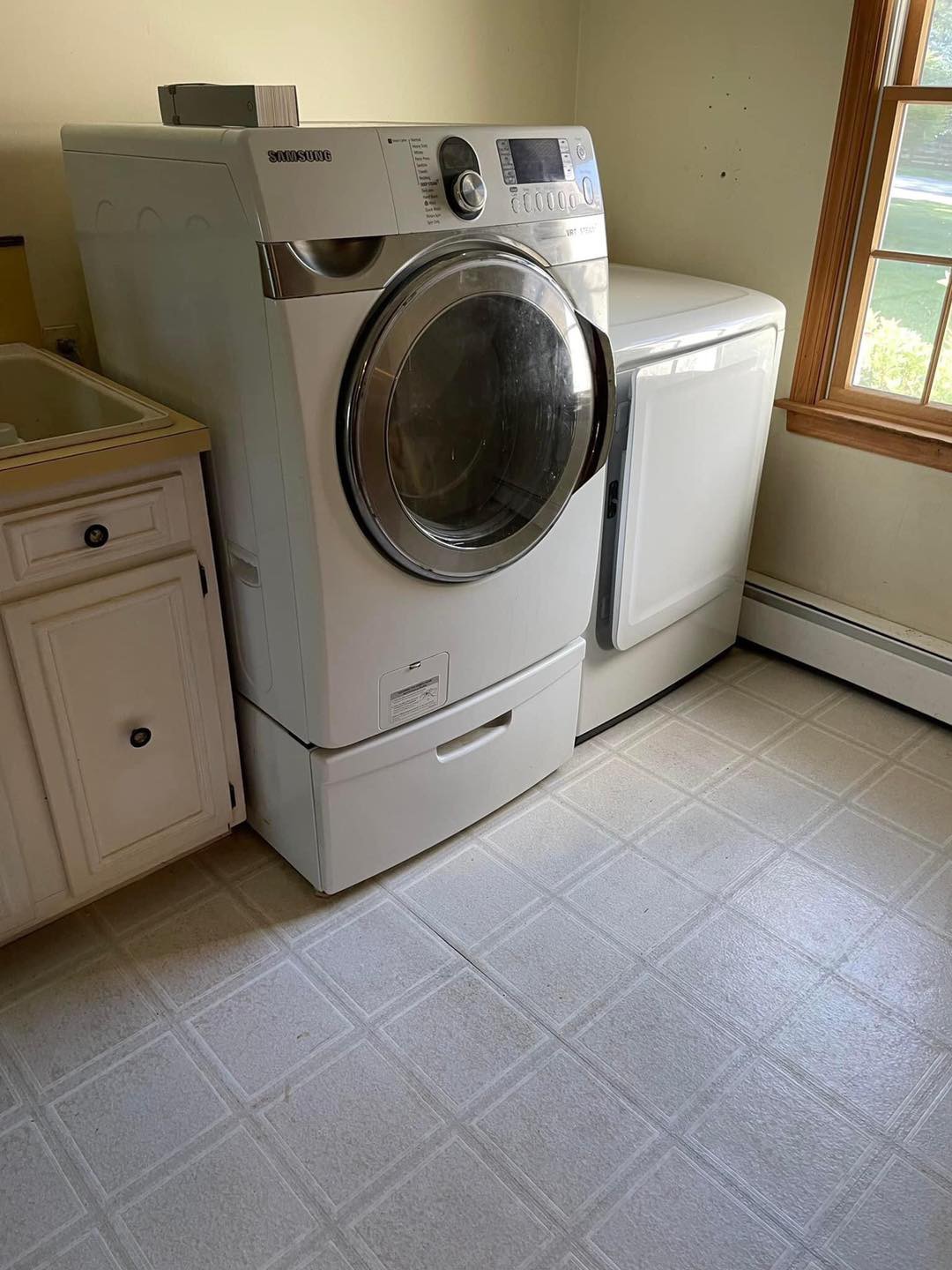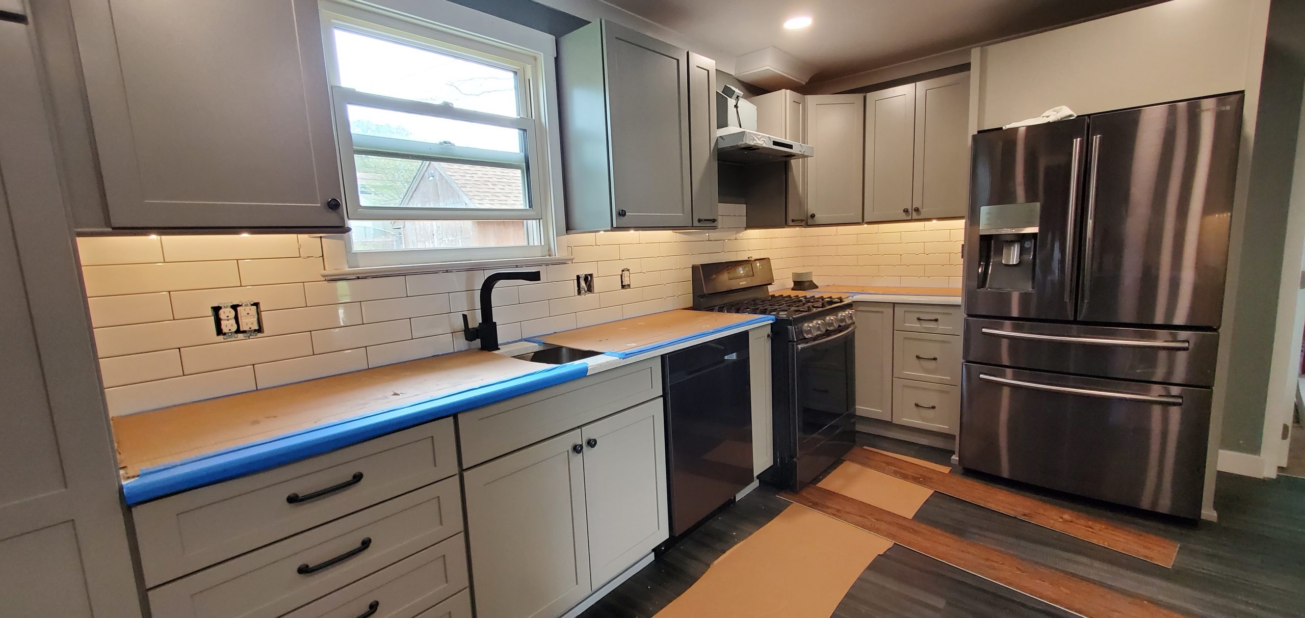 Laundry Room Makeover from floor to ceiling. These projects involved reimagining and reconfiguring the room with a new sink, new new appliance shelving, new cabinets, and flooring. (Click pictures to see full size)